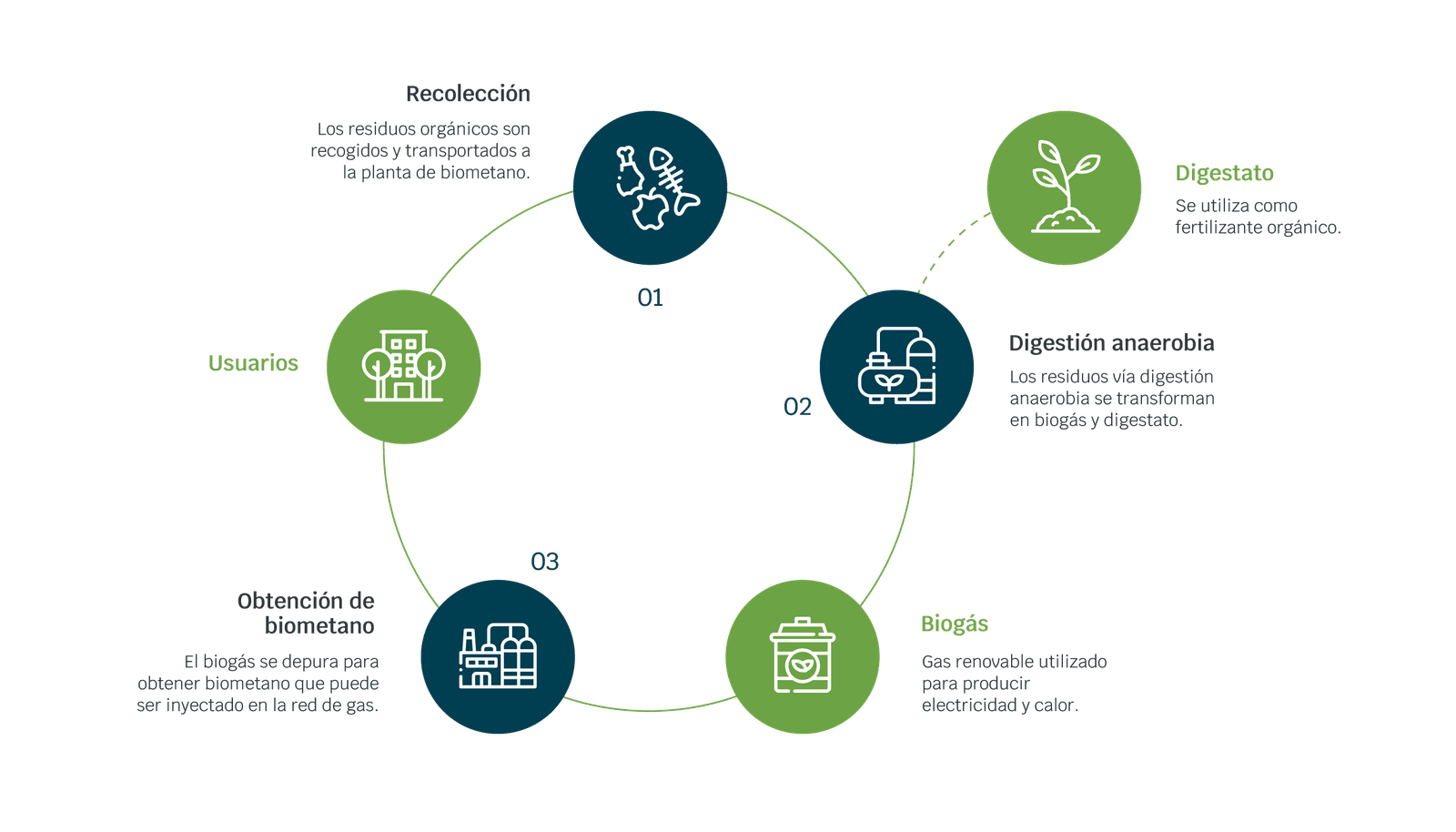 Como lideres de la valorización energética de residuos orgánicos, nos destacamos como pioneros en soluciones energéticas sostenibles. Nuestros proyectos de biometano transforman residuos biológicos en gas renovable, reduciendo significativamente la huella de carbono al inyectarlo en la red gasista. Además, producimos fertilizantes orgánicos para prácticas agrícolas sostenibles y mejora de la biodiversidad del suelo.